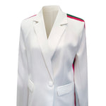 ●Chic Side Stripes: The White Pretty Elegance Blazer showcases stylish stripes along the sides in vibrant hues like pink and green, and red and white. This contemporary detail adds a fresh twist to its classic design, ensuring you always stand out in a crowd.