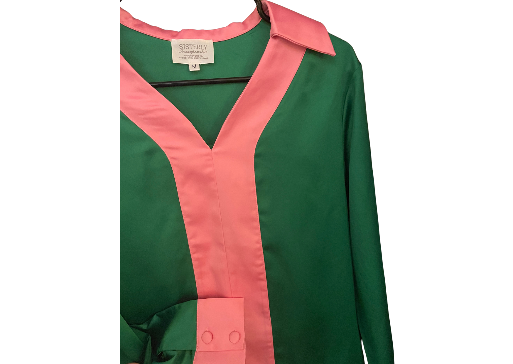 Embrace vibrant elegance with the Enchanting Harmony Blouse, a stunning piece that combines the sophistication of pink with the freshness of green. Available in sizes S to 4XL, this blouse is designed to flatter every figure, offering a comfortable yet stylish fit. Whether you’re dressing up for a special event or adding a pop of color to your everyday look, this blouse brings a perfect blend of boldness and grace to your wardrobe.