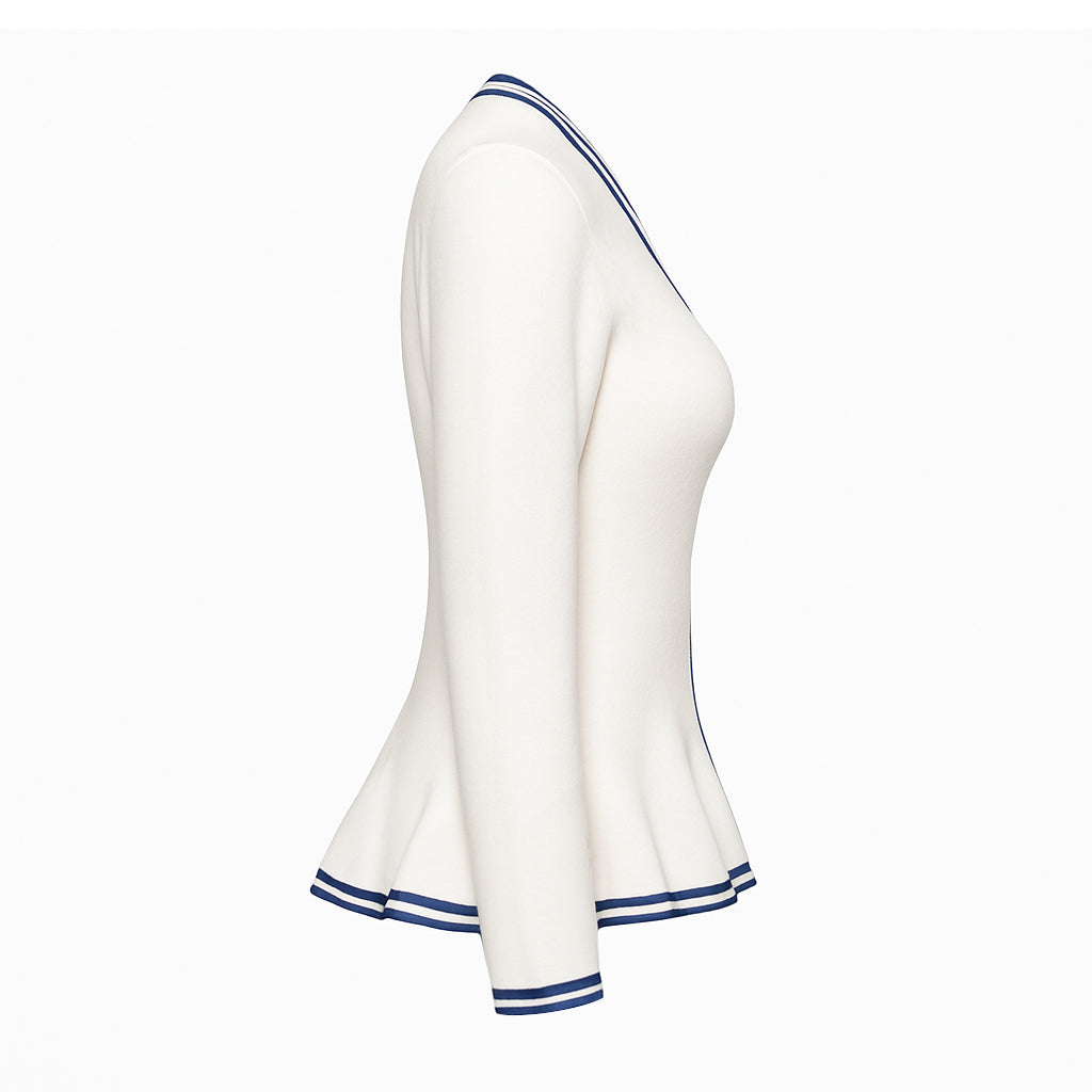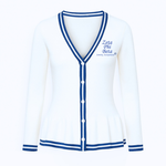 Adorned in Royal Blue and White detailing, the Finer Peplum Cardigan features exquisite craftsmanship and attention to detail — a true celebration of sisterhood, sophistication, and Zeta pride. 🤍✨